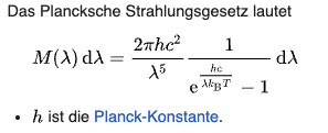 Max Planck interessierte sich u. a. um die spektrale Verteilung von Wärmestrahlung. Dafür hatten ein gewisser Wilhelm Wien sowie ein gewisser Rayleigh-Jeans Strahlungsformeln vorgeschlagen: