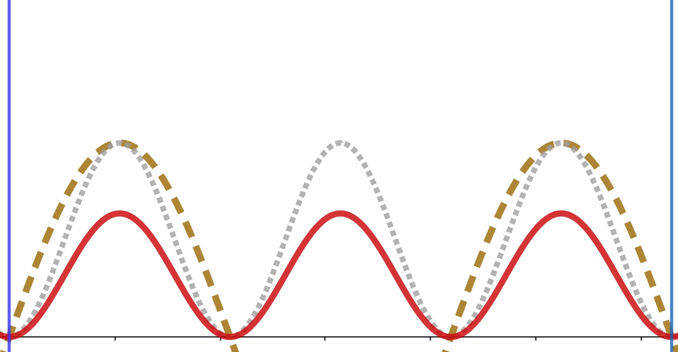 Positivität der Werte der Wahrscheinlichkeitsdichte - Summe aller Aufenthaltswahrscheinlichkeiten A eines Teilchens muss den Wert 1 haben